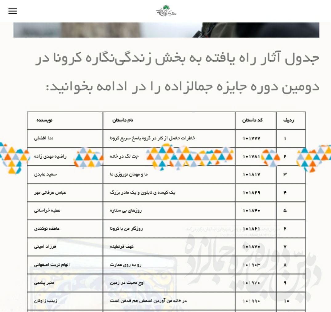لینک اسامی راه یافتگان به بخش نهایی جشنواره ی جمالزاده-