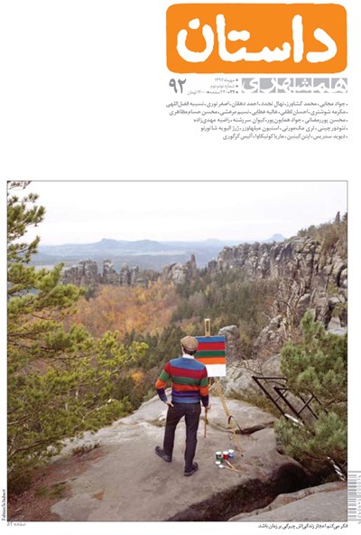 خاله سیما هروقت من را می بیند،خودش را به آن راه میزند. حتما به خاطر آن کفشهای صورتیست که میپوشد یا شاید به خاطر موهایش است که در این سن و سال یک روز گیس شان میکند. یک روز فوکول میگذارد. روز دیگر چتری توی صورتش می ریزد. روزهای بارانی، چترش را با رنگ لباسهایش ست می کند. در روزهای بارانی بیتشر نگاهش می کنم. شاید به من توجه کند اما حتی در روزهای بارانی هم که همه ی آدم های مهربانتر میشوند به من نگاه نمیکند. حتما از من خجالت می کشد. آخر،در آن دنیا همیشه می گفت: “دختر نباید رنگهای روشن بپوشد. گناه دارد.